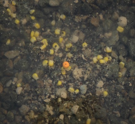 The other advantage of having so many small items of food on the spot, is that when the birds arrive, they won’t be able to clean you out too easily. No matter how long they sit over you diving, there’ll always be some food out there, along with that smell from the liquid, hovering, if you like, over the bottom too. When you’re pre-baiting especially, this can really work in your favour as the bait will remain until the carp arrive. Having a number of items in the mix allows you to play around with hookbaits and you can experiment with wafters, maggots or corn rigs.